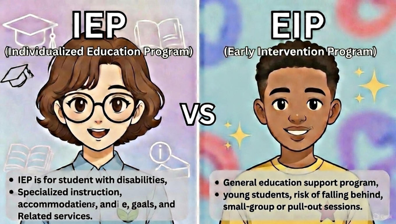 In special education and academic support, the terms EIP (Early Intervention Program) and IEP (Individualized Education Program) are often mentioned. They serve different purposes and target different needs.
